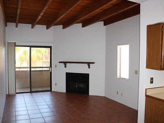 Private 2nd floor Catalina Foothills condo overlooking the community pool area. This conveniently located condo features ceramic tile throughout (no carpet), covered patio, high wood beamed ceiling, wood burning fireplace, black appliances, washer / dryer in condo, water, sewer, trash included in rent and a popular location near shopping and numerous restaurants.