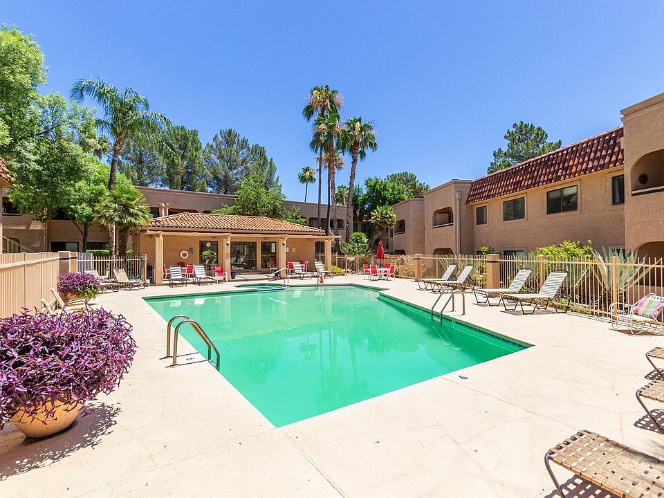 Seller will accept or counter offers between 152,000-159,000 Light and Bright Ground level home offers upgraded Kitchen with newer cabinetry and stainless appliances, Neutral modern concrete floors and plush carpet in bedrooms. Newer HVAC, Water Heater and Washerr and Dryer. Relax by the community pool/spa with lush landscaping.. A Great community and close to restaurants, Shopping and golf.