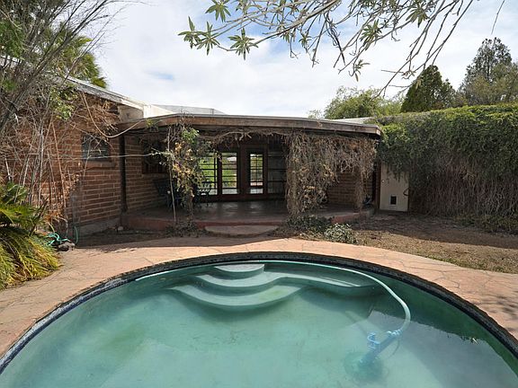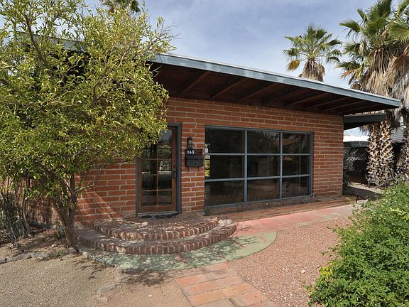 Charming Red Brick Bungalow, 2BD/1BA, tucked away at the end of the cul de sac. Unique design with tall windows, Saltillo tiles, wood ceilings with wood beams & beautiful stacked brick fireplace in LR. Kitchen is quaint with built in dining table w/benches. Covered patio welcomes you into a private oasis with a cool splash pool. Close to UofA, bike path, UMC, schools & restaurants. Don't miss this cute little Tucson home!