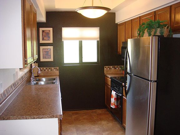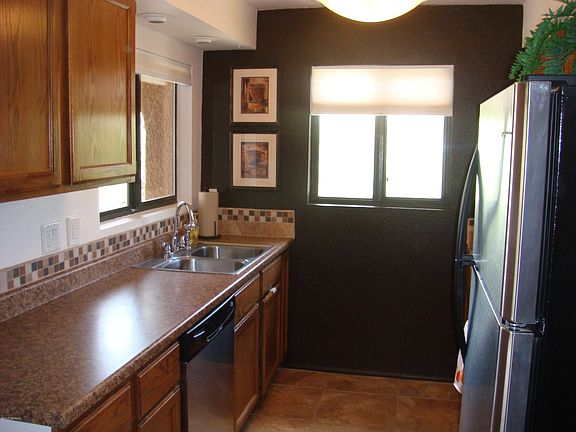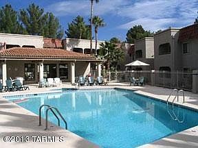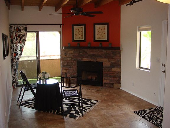For more information on this property, contact the Listing Agent, Rhonda Ledbetter at (520) 390-1011 or rhondal@LongRealty.com. Beautifully maintained, nicely updated and absolutely immaculate! Living area boasts corner stacked stone fireplace with mantle, 18-inch tile flooring throughout, wood beam ceilings. Refreshed kitchen has black and SS appliances, updated counters, refurbished cabinets, custom paint and 2 windows for natural light while preparing meals. Ample dining area. Huge master suite with walk-in closet, designer niches,newer vanities and fixtures in baths. Wood blinds and cellular shades; new light fixtures w dimmers throughout. High ceilings (9-10') throughout. Extra shelving in closets providing more storage. Screened balcony adds to living space. Corner end unit upstairs provides privacy, additional windows and views. Owner financing available. Call LA for terms.