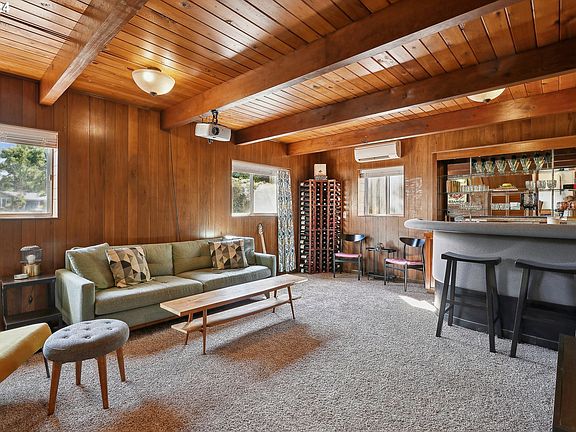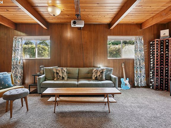 Welcome to this groovy mid-century modern gem in central Beaverton! This stylish home retains its 60's charm with original fixtures, wood cabinets, built-ins, and a bar/entertainment room downstairs. While enjoying the vintage vibes, you also have modern amenities, including new appliances, updated electrical outlets, PEX plumbing, a refreshed bathroom, and a mini-split system for heating and cooling.This beautifully maintained tri-level home, with only two owners in its 63-year history, offers an inviting open concept living and dining area with hardwood floors and a large window that floods the space with natural light. The updated kitchen still preserves some of its original charm, and adjacent to it is a spacious laundry room with convenient access to the backyard, garage, and a half bath.The basement is an entertainer's dream, complete with a built-in bar and projector, plus a bedroom and full bath. Upstairs, you'll find three generous bedrooms, ample storage, and a second full bath with a new soaking tub.Enjoy the large wrap-around yard, covered patio, and two-car garage. Perfectly situated close to schools, parks, and the Beaverton library, this home truly has it all!