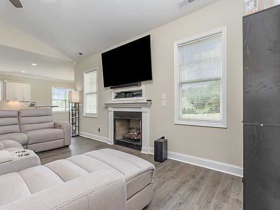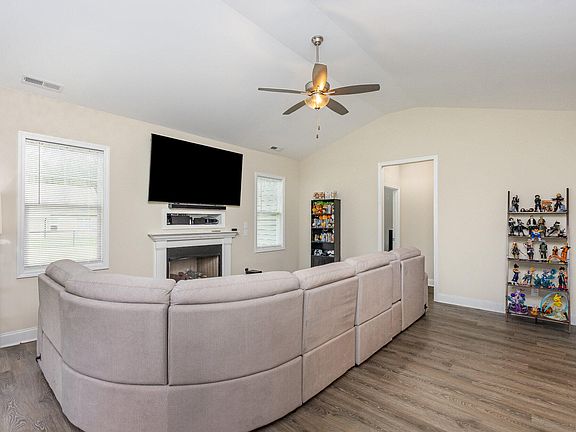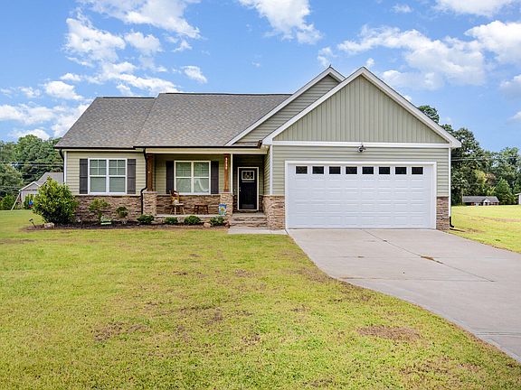 2022 Ranch split open floor plan with 3 bedrooms; 2 full baths; granite counter tops; stainless steel appliances including refrigerator; lots of cabinets; sit down bar; gas fireplace in Vaulted living room; double granite sinks in master bath with separate shower and tub; walk in closet; front covered porch; 2 car garage; back patio all on .38 of an acre. Town water; septic; No HOA; Bring an offer.