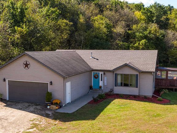 Your own private 4 bed, 3 bath retreat nestled on 6 acres of hiking and snowmobile trails just steps from the Zumbro River and Lake. Well, kind of private... you will have to share with the wild turkey, deer, and the abundance of wildlife that living near the bluff brings! The pole shed allows you to store your toys and has stalls for animals. The riding mower and blade for clearing snow are both