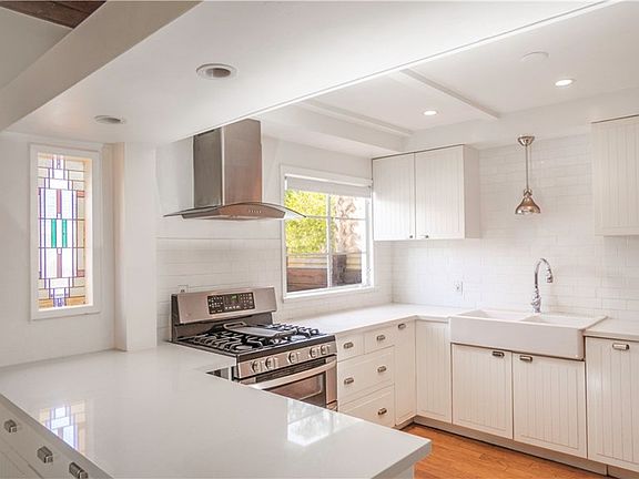 Great Encino Home located on a Tree Lined Street! This 3 bedroom, 2 bathroom home has an open floor plan with a living room and family room offering wood beamed ceilings and hardwood floors throughout. Stunning open kitchen with farmhouse sink, quartz counter tops, stainless steel appliances and plenty of cabinet space - thoughtfully designed for a chef! Family room with gorgeous wood beamed ceilings, fireplace, and slider to the backyard. A master suite complete with a sliding door to the backyard, walk-in closet, and it's own bathroom. Front living room equipped with projector - perfect for movie nights or gamers. Two spacious bedrooms share a full bathroom. Large private backyard with mature trees - 2 covered patios. Large lot offers plenty of room to add on, build an ADU, or add a pool! Current upgrades include fresh interior paint, new front landscaping, and new quartz counter tops. Move right in or add your personal touches! The possibilities are endless!