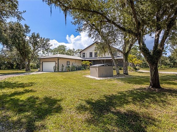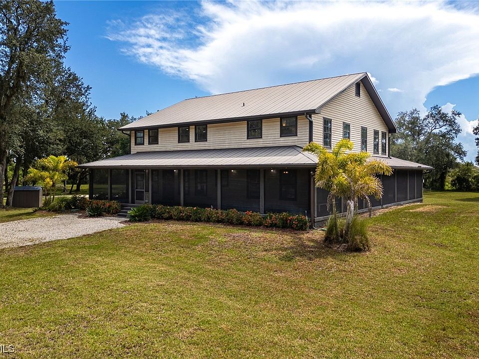 If you’re an equestrian enthusiast, farm lover, outdoor toy collector, or someone needing space for work vehicles, this is the property you’ve been waiting for. Tucked along the serene Harns Marsh Reserve, this stunning farm-style home offers peaceful country living just minutes from the convenience of town. Boasting over 4,000 sq. ft. of living space, the home features 4 spacious bedrooms with walk-in closets, 4.5 bathrooms, and a massive 1,000 sq. ft. wrap-around screened lanai with tiled floors and shiplap ceilings—perfect for entertaining or simply soaking in the pristine views. Completely renovated in 2020, this home lives like new with tile flooring, shiplap accents, new AC systems (one per floor), new water filtration system, new water heater, and a whole-house generator fueled by an underground 500-gallon propane tank. The chef’s kitchen is a showstopper with abundant custom cabinetry, tile backsplash, stainless appliances, gas cooktop, vent hood, and an oversized island that seats 10. Upstairs, double barn doors open to a spacious theater/family room/den, while downstairs the luxurious owner’s suite impresses with a custom walk-in closet and a spa-like ensuite featuring dual vessel sinks and a double shower with multiple heads. Step outside to enjoy the breathtaking backdrop of Harns Marsh wildlife, with endless opportunities to watch nature from your wrap-around porch. With nearly 6.5 acres, there’s ample room to add barns, workshops, or storage buildings—the possibilities are endless for those with horses, farm equipment, RVs, or work trucks. This rare gem combines modern comfort, timeless farmhouse charm, and versatile acreage use, making it the perfect retreat for anyone wanting space, privacy, and convenience.