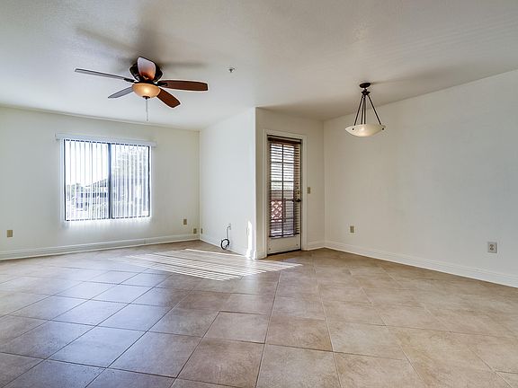 A vibrant community with a resort feel. Ground floor, this freshly painted 2 bed/2 full bath condo is sure to please. An updated kitchen with upgraded cabinets, granite countertops and stainless-steel appliances. The great room invites a natural conversation flow for friends and family and plenty of natural light. Featuring a split bedroom plan - each bedroom has a mirrored walk-in closet. There is ample counter space in the master bathroom to share. Tile and laminate wood flooring. Laundry room. Private patio. A gated community - one must see the grounds! Lush landscaping, mature trees, waterfalls, 2 resort style pools, spas, fitness center, clubhouse, ramadas, playground and more.