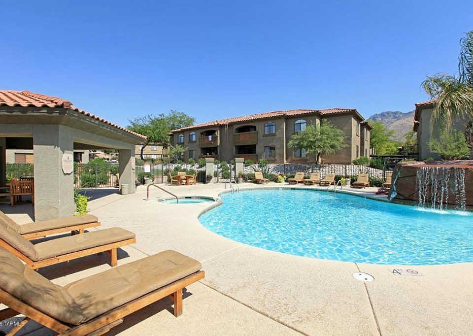 CALL FOR SEASONAL RATES AND AVAILABILITY. Second floor condominium in the gated Catalina Foothills community of Veranda At Ventana. This Tucson vacation / corporate rental is available for short-term leases and features a spacious covered patio with mountain views, open floor plan, master suite with walk-in closet, washer/dryer included, fully furnished and includes cable & Internet. The Veranda at Ventana Condos resort style amenities includes pools & spas, fitness center, ramadas with bbq, playground, sand volleyball court and a convenient location across the street from shopping and numerous restaurants.