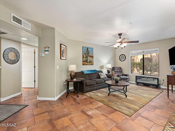 Lovely first floor condo in very popular gated Veranda At Ventana is looking for a new owner! Beautifully remodeled kitchen with stainless steel appliances, granite counter tops and back splash opens into the living/family room. Pleasant outside tiled patio faces common area and pool with some mountain views and offers nice privacy. Split floor plan with remodeled bathrooms - master walk-in shower and upgraded vanity tops speak comfort and convenience. Washer and dryer convey. Community offers two heated pools, spa, gym and community areas. This condo is located within minutes from Sabino Canyon recreation area, within walking distance to restaurants, shops and many amenities. Great as a second home or a full time residence. School district 16. Call for an easy showing!