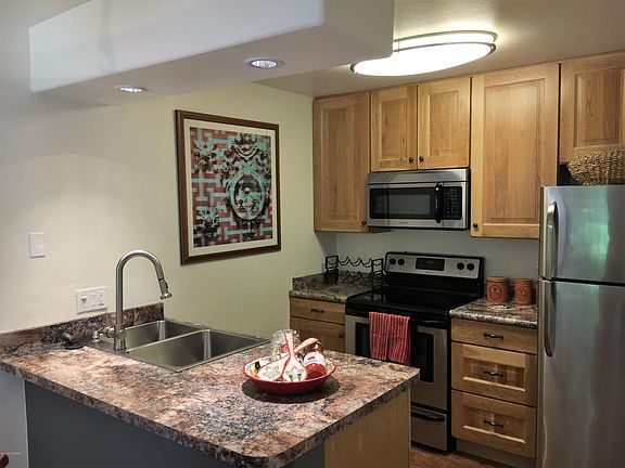 Spacious and open one bedroom condominium located in the desirable Veranda at Ventana community. Ground floor unit updated in 2016, including vinyl plank flooring throughout, new kitchen including countertops, appliances, recessed can lights over the dropped island, as well as a deep sink with arched faucet. Bathroom updates include soaking tub with tile surrounds, executive height cabinets, countertop, designer mirror and lighting package. Loads of storage space, walk in pantry, double linen closet, walk in closet in the master and a storage room off of the patio. Washer and Dryer included! Veranda features 24 hour gated access, a fitness center, 2 pools with custom pool furniture and water features. Close to hiking, restaurants and shopping. Listing Agent is directly related to Owner.