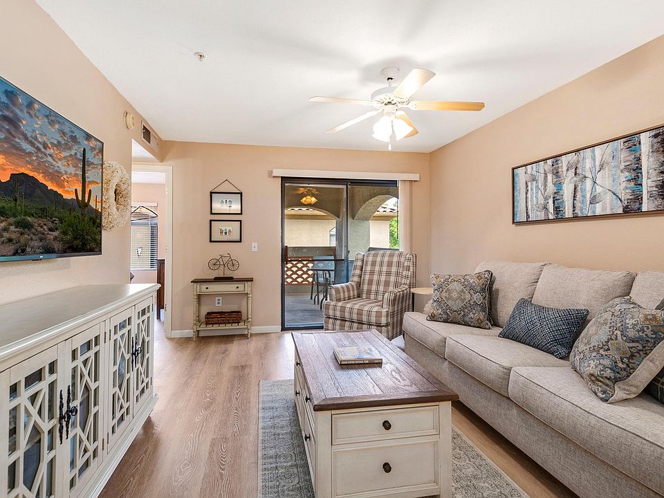 Beautiful Foothills condo located in the popular Veranda at Ventana Condominiums. This fully furnished 1BD/1BA condo offers a spacious living/dining area, custom kitchen with SS appliances & granite countertops, large pantry and washer/dryer. Enjoy the mountain views from the covered patio. Resort-like amenities include 2 heated pools, spa, fitness center and sports court. Gated community. Convenient location near shopping, restaurants, grocery store, post office, hiking trails and more.
