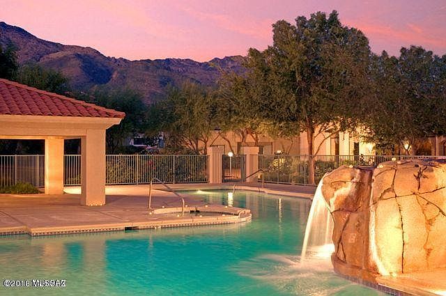Enjoy resort style living with mountain views from your living room, master suite and private patio. New carpet, tile, paint, ceiling fans, kitchen counters and sink. Beautiful grounds with gated entrance, 2 pools/spas, clubhouse with fitness center, sand volley ball court, playground, grills and 6 covered picnic areas. Close to Ventana Canyon and Sabino Canyon for hiking. Easy access to great restaurants, hospitals and everything Tucson has to offer.Furniture is available on a separate bill of sale.
