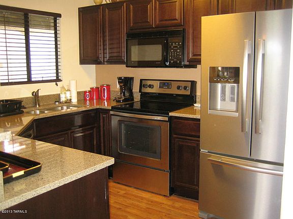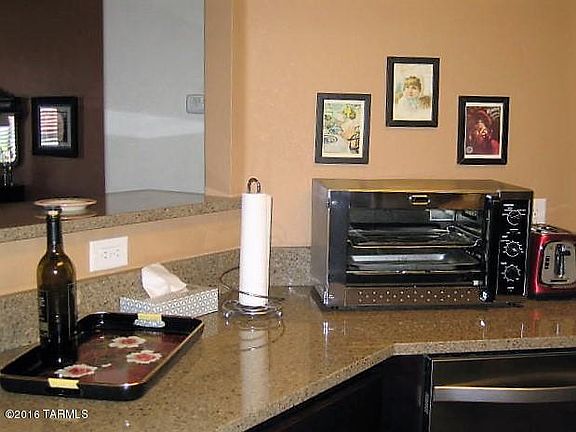 2nd floor Condo professionally decorated with resort style living. This unit features a private balcony with mountain views. The interior has an updated kitchen with granite counter tops & S/S appliances. Washer/Dryer in the unit along with laminate wood flooring in bathrooms, kitchen and front entryway. Master bedroom has a king bed and bedroom #2 has a queen bed. For additional guests, there is a single pull out chair bed and a queen size blow up mattress. This unit is nicely appointed and waiting for you! Call today to see this wonderful condo. Close to Sabino Canyon and hiking trails, shopping and restaurants. Professionally decorated!! Sorry, no pets. P516