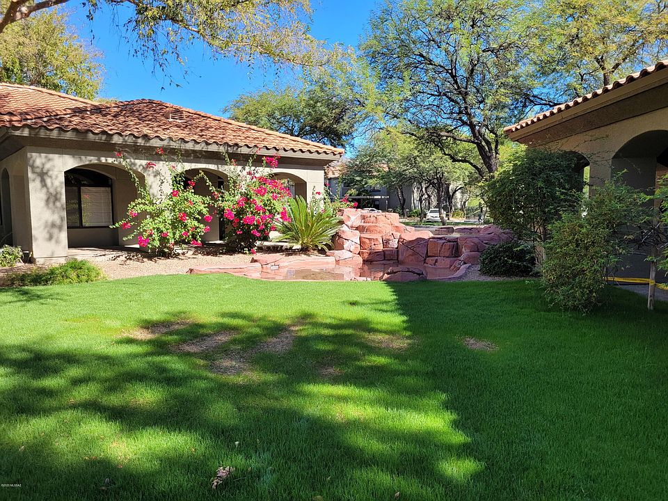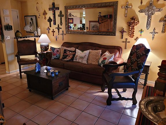 Once you pass thru the gate you enter a luxury resort like style living at its finest. This unit is on the end and you can walk to one of the pools. Upon entering the unit, you have a defined entry space with a partition wall looking in to a spacious great room. Kitchen features Colbolt Blue Mexican Tile counters, plenty of cabinet space, a breakfast bar & a walk in pantry. Owner's suite includes large walk in closet. Between the bathroom & the owner's suite, you will find a large double door linen closet providing more than ample storage space. Spacious private patio. Unique decorative features include tin chandlier, bathroom light fixture even decorative tin light switch plates.