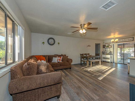 Immaculate, updated Prescott Valley home in quite neighborhood. New interior and exterior paint, flooring, water heater, A/C, and heat pump in 2017. Big, open back and front yards with tons of mature trees. Open concept great room opens into the gorgeous kitchen with updated cabinetry, backsplash, tile counter tops, and pendant lighting. Big master suite with walk-in closet. Separate laundry room with folding area and cabinets for storage. Ceiling fans throughout the house and RV parking. This turn-key home in a quiet neighborhood with NO HOA has unlimited potential. Swing by and check this one out before it's too late.