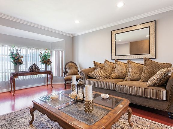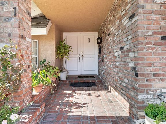 Welcome to this fantastic opportunity to purchase a home in the heart of La Palma! This amazing Ponderosa home is one of the most sought after models featuring 4 beds, 2.5 baths, pool & attached 2-car garage. The exceptional curb appeal begins with the long, attractive brick hardscape driveway leading you to the porch entry with double doors. Immediately upon entry, you will be greeted with the impressive formal living & dining area, perfect for entertaining. The open kitchen showcases granite countertops, plenty of cabinet space for storage, an electric stovetop, stainless steel hood & appliances, dishwasher & microwave. The eat-in kitchen with an upgraded fireplace opens to the large family room with access to the backyard. Conveniently located downstairs is the guest bathroom & easy entry to the 2 car garage, including its own laundry area. Upstairs you will find the spacious Master Suite with a large closet and double vanity. Also upstairs are 3 more bedrooms with good-sized closets & full bathroom. The back yard offers a peaceful place of relaxation & ample space to entertain with the extended covered back patio, ceiling fan, brick fireplace & sparkling swimming pool. This beautiful home features newer AC, recessed lighting, real wood flooring, custom cabinets, attic insulation & a well-desired floor plan. For your convenience, this home is located close to parks, grocery stores, banks, freeways, & award-winning schools, including the nation's top-ranked Oxford Academy.