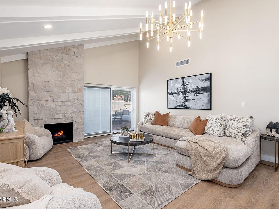 Beautifully remodeled single-story townhouse situated on a desirable corner lot, showcasing premium finishes and contemporary design throughout. The fully updated kitchen features brand-new shaker cabinets, Forno appliances, quartz countertops, and an elegant tile backsplash. Vaulted ceilings and brand-new vinyl wood flooring create an airy, inviting ambiance in every room. The spa-like bathrooms are thoughtfully upgraded with high-end shower systems, framed mirrors, shower niches, and custom vanities. Outside, the private, courtyard-style backyard includes a covered patio and Spanish tile—perfect for relaxing or entertaining.