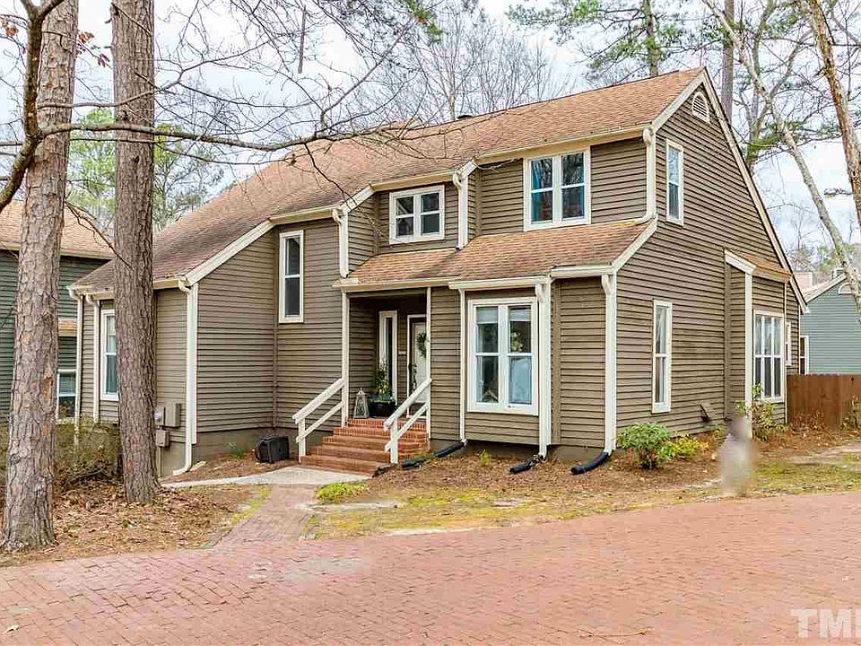 Open, bright and in a natural setting, this easy living home doesn't feel like a townhome! Great floor plan with master BR with en suite plus another BR and full bath on main level. Absolute coolest renovated kitchen with gorgeous quartz countertop, cabinets, induction cooktop. Tons of closets. Private fenced in back yard with deck and patio for entertaining and enjoying the outdoors. Windows being repaired; roof being replaced by HOA. Great N Raleigh location close to shopping.