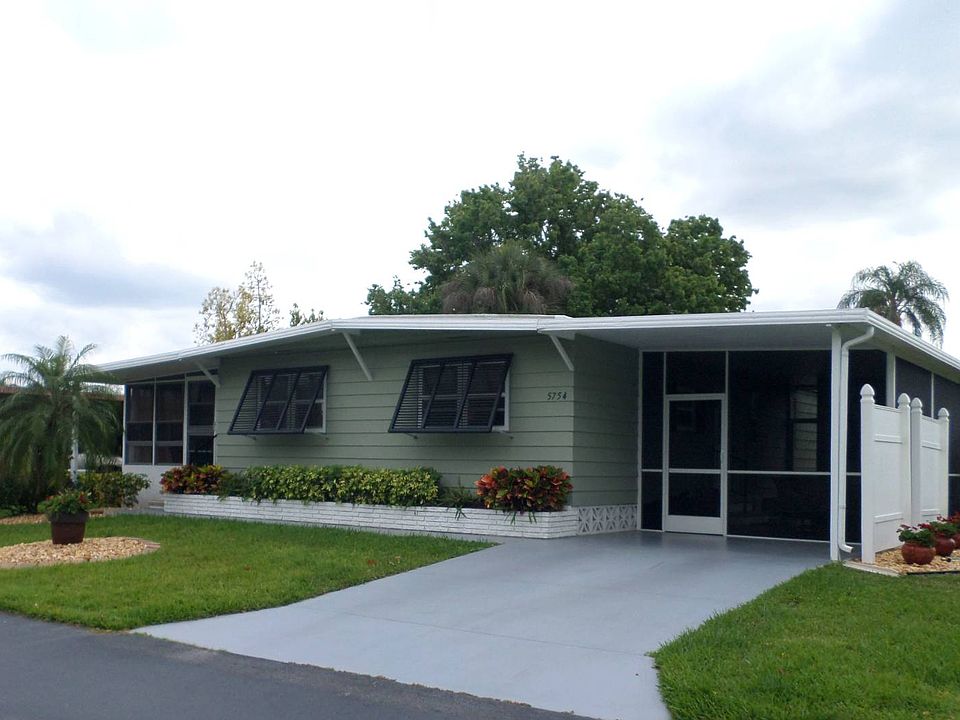 Nicely updated, beautifully furnished! This home is absolutely immaculate inside and out. The home has been freshly painted, new screened porch off drive and professionally landscaped around the home with attractive and carefree rock bedding and hearty tropical plants. This home boasts a newer membrane roof in 2015, 2017 HVAC unit, double pane windows, new light fixtures and electrical switches/outlets, drywall and new flooring throughout the home. You can literally bring your suitcase and start living your dream! Home is furnished as pictured minus personal items, electronics and some decor. Camelot Lakes is a beautiful, gated resort-style community where your monthly lot rent includes water, sewer, trash/recycling curbside, lawn maintenance, taxes and endless upscale amenities and organized activities. All shopping needs, great restaurants and entertainment are just minutes away via quiet back roads or easy I-75 access. Tired of having everything at your fingertips? Take a 7 mile drive to the beautiful quartz sand beaches of Siesta Key. Throw out a line, take a dip or enjoy an energizing walk along the shore. A never ending supply of quaint shops, top restaurants and some of the nicest people you'll ever meet!