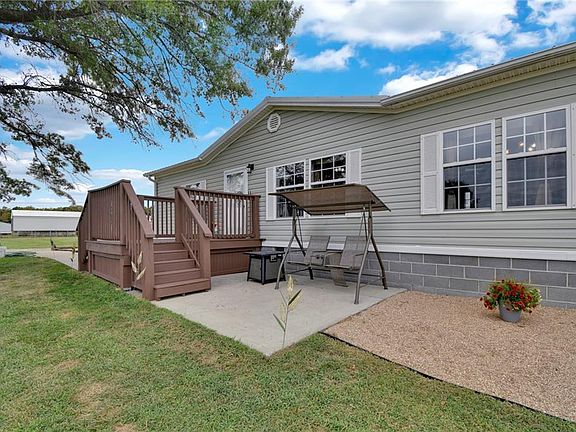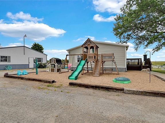 Country home, sitting on over 9 acres of beautiful land. This Adrian, Mo property offers just about all a family can think of for home, business, livestock or income property. Built in 2011, it is a 4 bedroom, 2 bath ranch house (manufactured) sits on a permanent concrete & blocked foundation. The roof was redone with all metal roof in 2015. Has over 2300 SF of home! Very large living room with a wood burning fireplace. Open concept kitchen with large island, as well as lots of cabinet space. The 4 Season sunroom has mini split tile floor with views of the farm & opens into family room. The kitchen has an Island & beautiful countertop. A dining Room. Large laundry. Mud room with sink. Hall bath & linen closet. The master bedroom has a master bath with jetted tub. Separate shower. Double vanity. Separate stool room. Fencing around the property gives a great opportunity to house and host many different livestock options. There are 2x oversized hay barns that are rented as hay storage barns. 32X80 Shop, overhead doors with openers, concrete floor. Additional 40x80 shop & 20' of concrete fl. 2 hay barns - 40x80 & 40x100. These are rented. Newer 2 stall horse stall & tack Rm. All fenced, pond, freeze proof waterer, 2nd waterer in lot. Great value with all it offers. Must see.