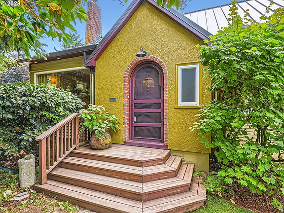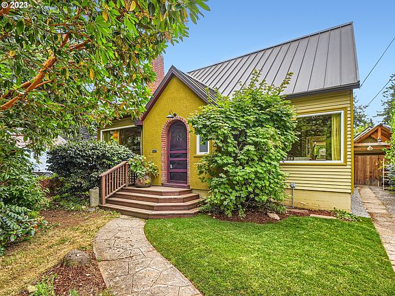 Welcome to this updated English style home with an enchanting extra-large, garden-filled lot. Enter into the large open front living room and dining room perfect for entertaining groups. Stay warm by the high efficiency wood stove. Downstairs is a sizable family room, bedroom and bathroom-perfect extra space for guests, playroom and hobbies. Upstairs there are two additional bedrooms with beautiful fir floors. Exit to the back patio where you will find your own private sanctuary. You can wander through the double long lot full of garden beds with varied and unique plants, vegetables and fruit trees or step into the greenhouse or take a sauna in the back shed. This is a true urban oasis. The home has been updated with a metal roof, solar panels, high efficiency gas furnace, central air-conditioning, windows, plumbing, electrical, and earthquake strapped retrofitted. Additionally, the kitchen has updated cork floors, new cabinets, concrete countertop, and induction stove/ convection oven. This is a well loved and cared for home. Come and see this wonderful home! Open House Saturday & Sunday 7/22 & 7/23 1:00-3:00 PM. [Home Energy Score = 4. HES Report at https://rpt.greenbuildingregistry.com/hes/OR10219671]