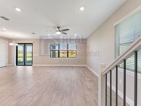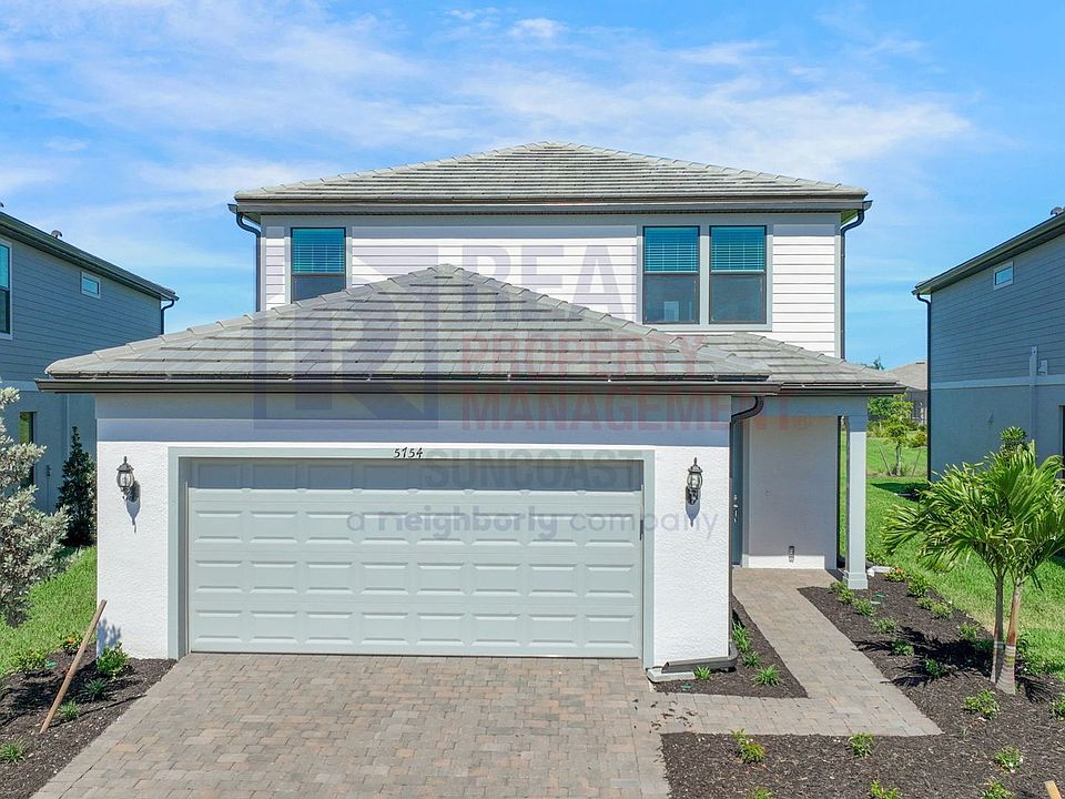 Welcome home to a beautiful property, recently built in 2024! Located in Sapphire Point, a gated community in the heart of Lakewood Ranch, and situated on a small lake, you'll take in water views from the kitchen, family room, and master bedroom. There is beautiful wood look tile flooring throughout the downstairs and in each bathroom, and carpet in each bedroom and on the stairs. The kitchen has a spacious and open layout with a large center island and Whirlpool appliances. There are a total of 4 bedrooms and 3 full bathrooms. In addition, there is a loft upstairs! Each bedroom is equipped with a ceiling fan that includes a light. The master bathroom has two sinks, a large walk-in closet, and a spa like shower with a bench to sit. The laundry room upstairs features a Whirlpool washer and dryer. The home is pre-wired for cable and high-speed internet in each bedroom and the family room. The garage has a wash sink and a charging port/outlet for an electric vehicle. The gated neighborhood of Sapphire Point has a wonderful Community Center with an exercise/weight fitness room, large family style room with kitchen and two big screen televisions as well as tables/chairs/sofas to hold gatherings, and a swimming pool with barbeque grills and a firepit. In addition, the Community Center features a playground, full-length basketball court, and a dog park. The neighborhood is located across the street from the Lakewood National Golf Course and Country Club, and around the corner from the Lakewood Ranch Library, the Premier Sports Complex, and U.S. Post Office. You'll feel right at home here with the ultimate Florida lifestyle! ~This home is professionally managed by Real Property Management Suncoast! ~Application fee is $50 per applicant over 18 ~No Pets Allowed ~Renters insurance is required ~One Months rent and deposit (Equal to 1 months rent) due upon lease signing