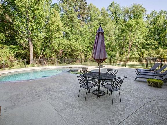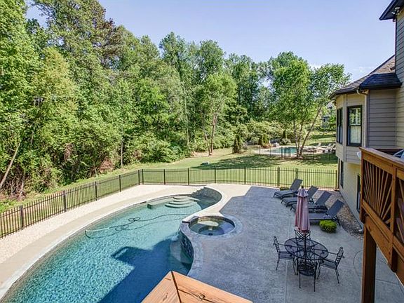 Backyard Paradise in Deerlake! Beautiful executive hardcoat/stone stucco w/inground gunite pool & heated spa. Master on Main w/open floorplan. Large granite kitchen w/stainless appliances wide-open views to great rm w/gas fireplace & bookcases. Finished terrace level w/game rm, Family rm & full Bath. Two car garage on main w/driveway to lower level 3rd garage. Refinished hardwoods on main, iron spindles, new carpet upstairs, newer roof & hot waterheater.Unique energy saving exterior retractable screen on palladium window. Award winning schools & low Forsyth Taxes!