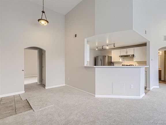 Welcome to the remarkable end unit nestled within the desirable First Creek Farm Condominiums, offering not one, but TWO balconies to enjoy! As you step inside, you'll be greeted by the inviting ambiance accentuated by high ceilings and abundant natural light flooding the rooms. Whether you're cuddling up by the fireplace during winter or embracing the gentle breeze from the balconies on a spring day, this condo offers a perfect blend of comfort and relaxation. Don't miss the brand-new flooring and paint throughout! The kitchen, seamlessly integrated into the living and dining areas, provides ample countertop space and a modern layout ideal for entertaining. With a spacious design featuring two large bedrooms and two full bathrooms strategically positioned on opposite ends, privacy is assured for all occupants. The primary bedroom exudes luxury with its ensuite bathroom boasting an oversized tub, double vanity, and a walk-in closet. Additionally, it offers the privilege of a PRIVATE balcony complete with a storage closet, perfect for enjoying quiet moments outdoors. The secondary bedroom, equally bright and comfortable, comes with a sizable walk-in closet and a conveniently connected bathroom. For added convenience, a full-sized laundry room is located directly off the kitchen. The kitchen features meticulously chosen details in its recent remodel, including newer appliances, enhancing both functionality and aesthetics. Beyond the unit itself, the community amenities are unparalleled, featuring gated access, gated parking (1 carport space), a hot tub, pool, playground, clubhouse, and a 24-hour fitness center. Situated mere minutes from Denver International Airport (DIA), this location caters perfectly to frequent travelers and airline employees, offering unmatched convenience. Don't miss the opportunity to call this exceptional condo your new home, where luxury, comfort, and convenience converge seamlessly. Schedule your tour today!