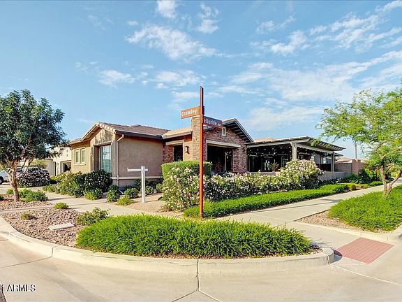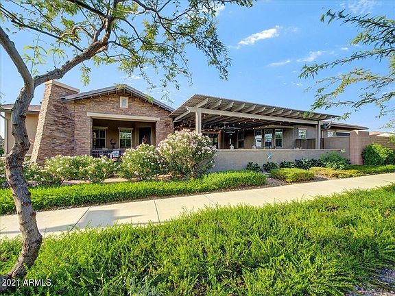 This one of a kind luxury home is masterly crafted and located in the 55+ active adult community of Encore at Eastmark. A spacious one story home with 2,918 sf, 2 bedroom plus den, 2.5 bath house with 10' ceilings is designed to outshine the most fashionable model home. The kitchen boasts stainless steel appliances, granite countertops, and cherry cabinets with an open floor plan that makes entertaining a dream. You will love the spacious master bedroom and bath. Relax in the courtyard while listening to the peaceful water feature and basking in the glow of the fireplace. You can also unwind in the resort style spa, or host around the crystal clear pebble tech pool, BBQ, or by the second stone fireplace. Pamper yourself in Resort Style Living including over $360,000 of tasteful upgrades.