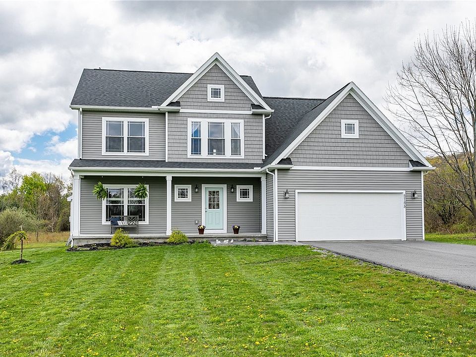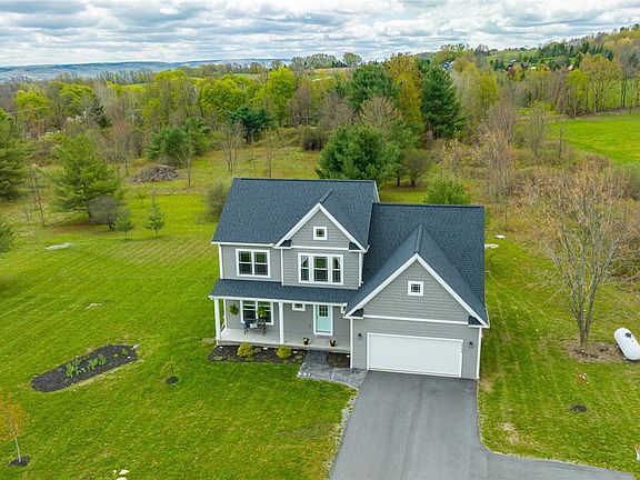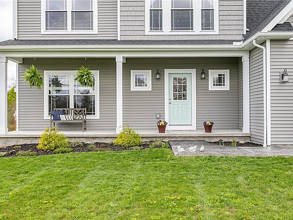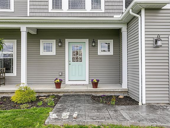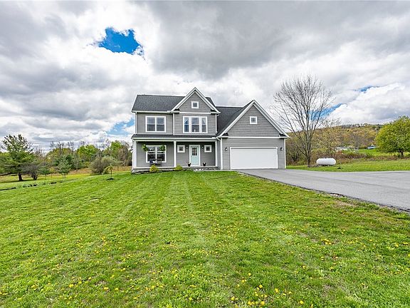 Welcome to this stunning newly built home in Canandaigua schools situated on 7 acres with serene privacy, trails, ample flat green space & more. This modern & luxurious 2021 built Colonial boasts high-end & modern finishes throughout! Why build?! Set back away from the road w/ a charming front porch & new walkway. The eat-in kitchen offers modern cabinets, SS appliances, granite counters & a tile backsplash 2022. The kitchen island overlooks the living room w/ a statement making gas fireplace, making it easy to entertain guests in the great room. A walk in pantry, 1/2 bath, mud room & main floor laundry wrap up the 1st floor. 3 possibly 4 beds upstairs including the king sized master suite w/ walk in closet! Step outside, relax & enjoy the newly added stamped concrete patio 2021 plus a fire-pit. The basement is an amazing opportunity to add additional SqFt w/ 9ft ceilings & an egress window, waiting for your finishing touch. Don't miss the extra large 2-car garage & shed for even more storage! Furnace '20, A/C '21, Hot Water Tank '23, Windows/Roof '21, Driveway '21, Whole House Water Filter '22, Reverse Osmosis In Kitchen & Well Storage Tanks! Offers due 5/15 at 9:30am.