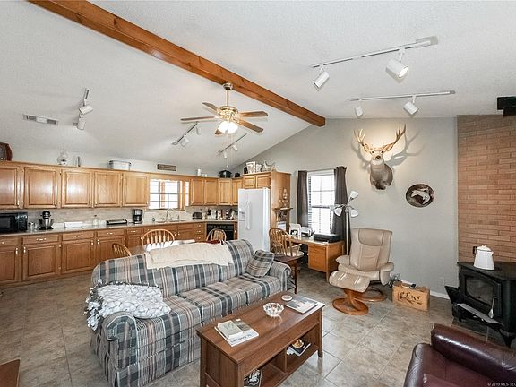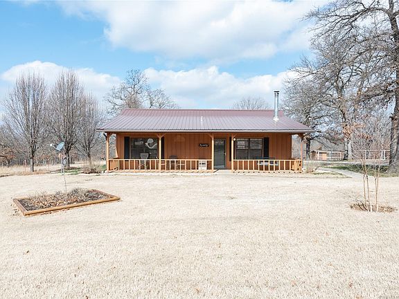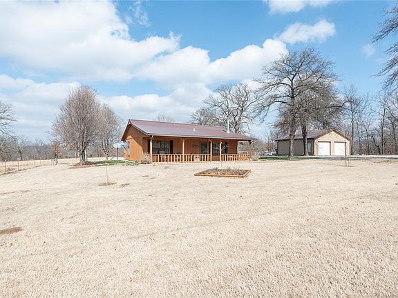 Come sit on the front porch, swing and RELAX!! This 2 bedroom/1 bath cabin has a combo kitchen/living room w/vaulted ceilings and wood stove. Sits on 4.7 acres m/l that is fully fenced, detached 2 car garage, with 1/2 bath and lean-to shed.