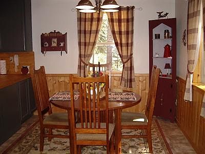 This 2 story mountain home is on a flat lot and easy access with its circular drive.Newer built with all the amenities for part time or full time use. There are approved plans for a garage/shop space. Upstairs features wood floors and on the first floor under the vinyl is wood floors too! The floor plan is open to the kitchen/dining and living room and features a propane stove plus forced air heat. All appliances and furnishings stay just move right in.