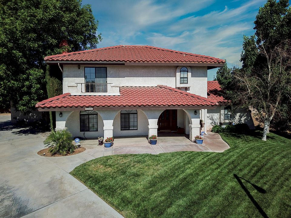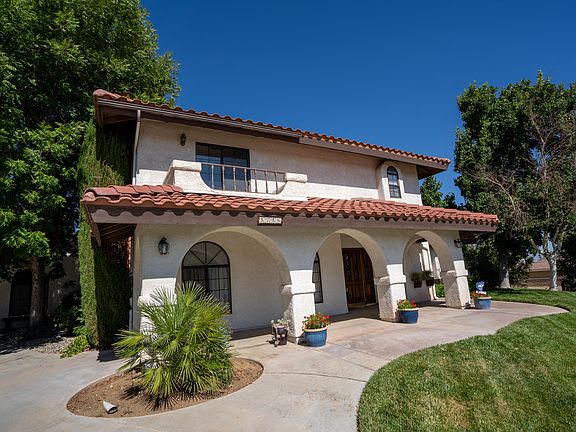 Big, Beautiful home with pool! Located on a large lot with-in one of the most desirable areas in the Antelope Valley. This gem of a home offers mature landscaping , 3 car garage, and a quiet street. Inside this Tuscan style home you will fine solid wood doors and trim throughout. New wood laminate flooring. Newer stainless steel double oven and dishwasher. Heating and cooling system was replaced in the last 4 years. Upstairs the master bedroom boasts a walk out balcony with a great view. There is a second walk out balcony in the back bedroom overlooking the pool and yard.The backyard welcomes you home with an over-sized back patio and cover perfect for relaxing in the evening. The poo is heated by solar system making it super inviting just waiting for your summer fun. Bedroom and 3/4 bath down stairs