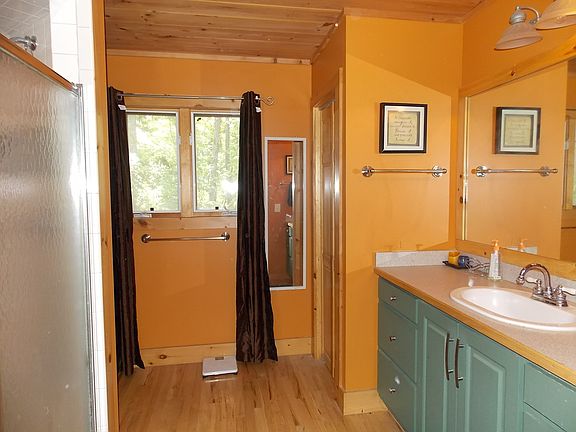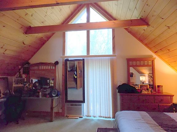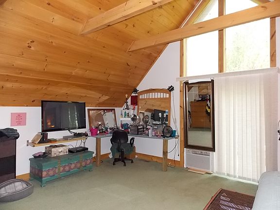 Unique one owner custom built A-frame. Main living area upstairs & garage/basement area ground level & finished rooms are used as recording studio, control room and den area. Propane tank buried, propane hot H20 htr & dryer. Buried electric lines.