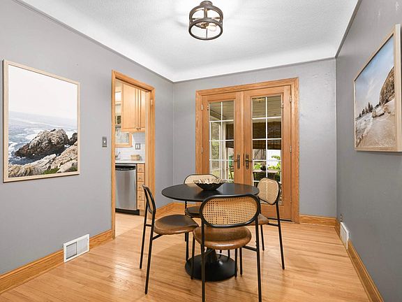 This charming 3-bedroom home sits in the desirable Windom neighborhood on a corner lot with an oversized 2 car garage and a fenced backyard brimming with vegetable gardens and landscaping. The bright kitchen has been stylishly updated with lots of countertop and storage space, and the dining room has beautiful French doors that lead out to the charming screened porch. The main level also features a living room with a cozy gas fireplace, as well as two bedrooms and an updated bathroom. The spacious upper level primary bedroom includes a walk-in closet, which has excellent ceiling height, allowing for the potential to add a future 2nd bathroom. The clean, unfinished basement has lots of space for storage, as well as the additional potential for adding more finished space, such as a future family room, 4th bedroom, and/or bathroom. You’ll enjoy spending time in the screened porch and from there you can step out onto the backyard patio where you’ll be surrounded by the vegetable and fruit garden in the fenced backyard. You’ll love the location, as this great home sits within a few blocks of fantastic neighborhood businesses and restaurants, while also being close to Minnehaha Creek and the Grand Rounds trail system.