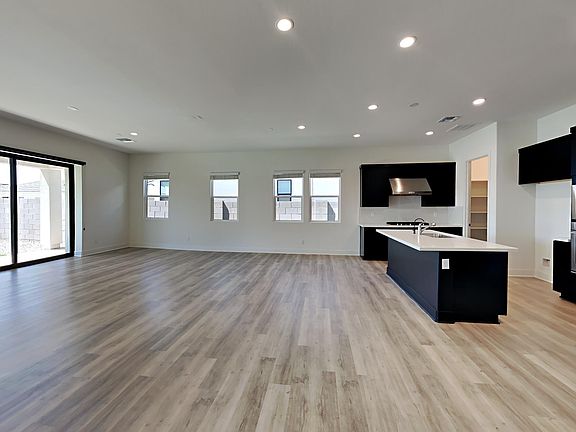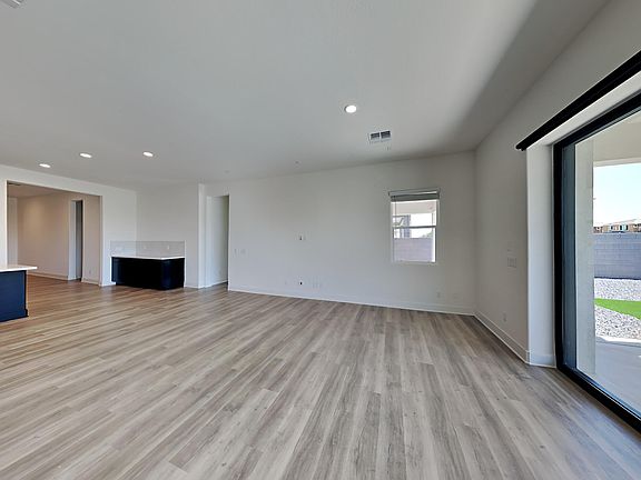 Wide open concept living space. The Primary split to rear with sliding door patio access and ensuite bathroom with a Walk in shower and closet. Half bath and laundry off garage hallway. Covered patio, turf backyard with palm tree view. Home is move in ready!