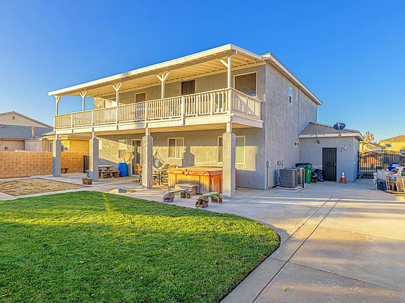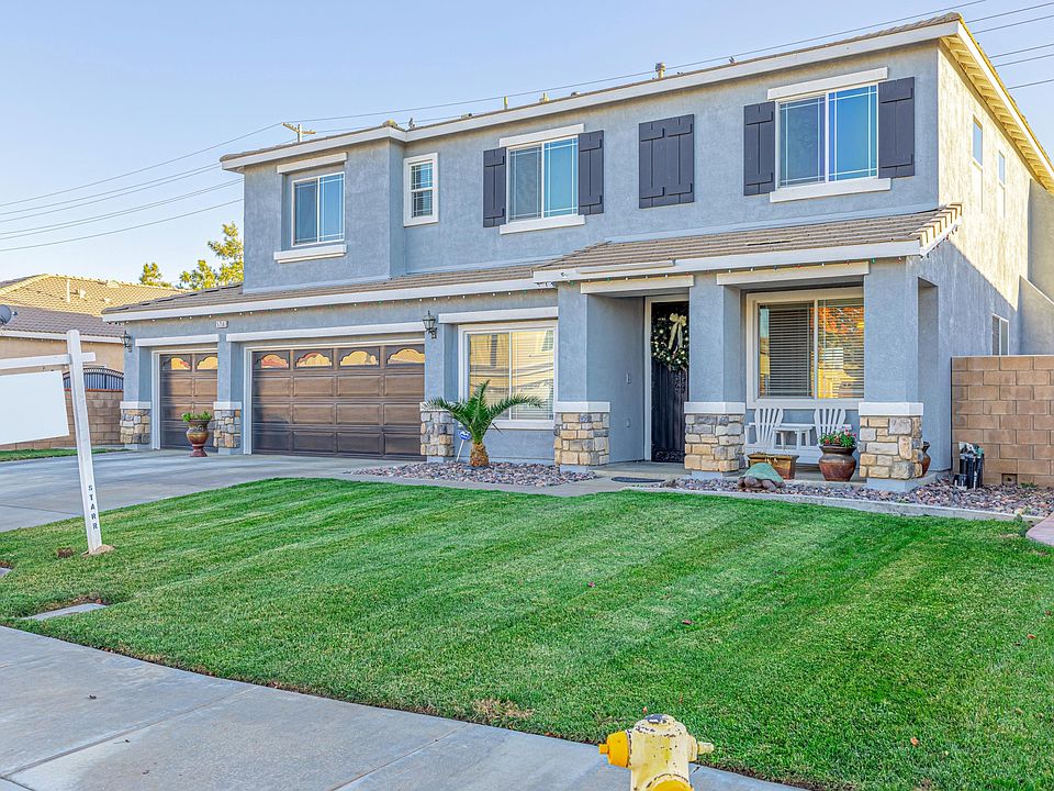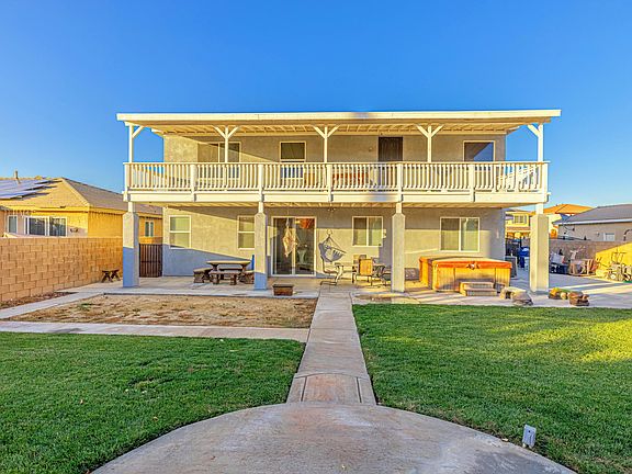 Beautiful 2 story house in the quiet community of West side of Lancaster, offer 5 bed/4bath with Solar system. One bed room and bath are downstairs. pride of ownership. Granite counter tops and double oven and beautiful cabinets open up to family room. formal living/ dining room . Upstairs has 3 bedrooms and over size master bed/ bath leading to retreat room with fireplace. full size balcony leading from master bedroom. ceiling fans thru out and 3 car garageBackyard feature with nice landscape and spa and concrete pad thru out. Sauna and Spa and security, solar system are included in the sale. Solar has 30 year warranty per seller. Sauna and spa come with the house as well!