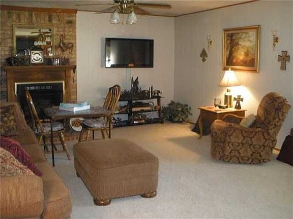 Great country living - Nice 3 bed, 2 bath brick home on 15 acres, shop bldg, large storm shelter, large covered patio, garden area, fruit trees, pecan trees, pond, 2 loafing sheds, fenced and cross fenced, security gate. Approx 2007 or 2008 put on new roof, new windows, CH&A.