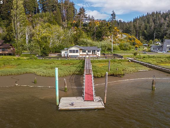 BRIDGE HOUSE Coquille River Fishing Lodge Wake up to egrets, herons, bald eagles and jumping salmon. Two Bedroom Retreat with frontage on the Coquille River along with a modern permitted deep water access dock. Perfectly decorated and ready for instant occupancy as furniture is included. Drilled well and modern septic system. Four off-street parking spaces plus garage. Once in a lifetime opportunity!