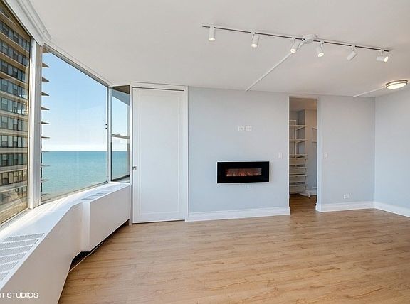 Gut rehabbed one bedroom with breathtaking views of Lake Michigan! Brand new white kitchen with quartz counters. LED fireplace lends to a warm atmosphere. Fully Rehabbed bathroom! New hardwood floors throughout and large walk-in closet. Shared rooftop deck and party room overlooking the beach is a must see!