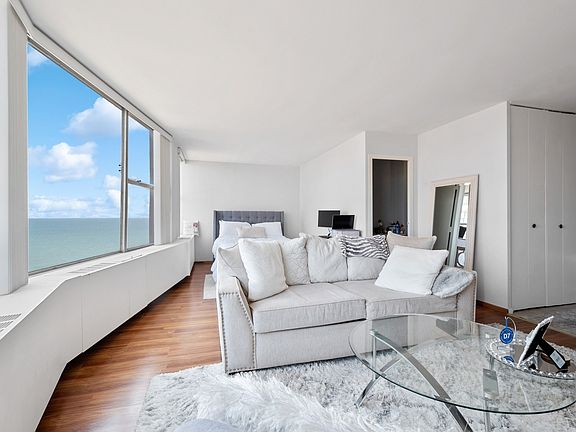 Affordable Lakefront living at its best with FABULOUS LAKE, BEACH & CITY VIEWS in this spacious studio. Plenty of work-from-home room in an incredible building right on the beach at the northern end of the fantastic lakefront biking and running trails. Northern exposure unit features GREAT VIEWS, wall to wall windows and lots of closet space. Rooftop party room with large deck is under renovation. Awesome, private, outdoor back patio with built in grills for barbecuing directly across from beach. Doorman, laundry in building and garage parking. 5757 N Sheridan is a fabulous building ON THE BEACH/bike path, with HEAT, CABLE TV and INTERNET INCLUDED IN ASSESSMENTS & NO RENTAL RESTRICTIONS! Sorry, no pets. Indoor, heated valet parking is $185/month. Express bus at door. 2 blocks to Red Line. Beach at back door! Close to Andersonville, Whole Foods, Marianos, shopping, restaurants, theater, Loyola U and everything fabulous Edgewater has to offer!