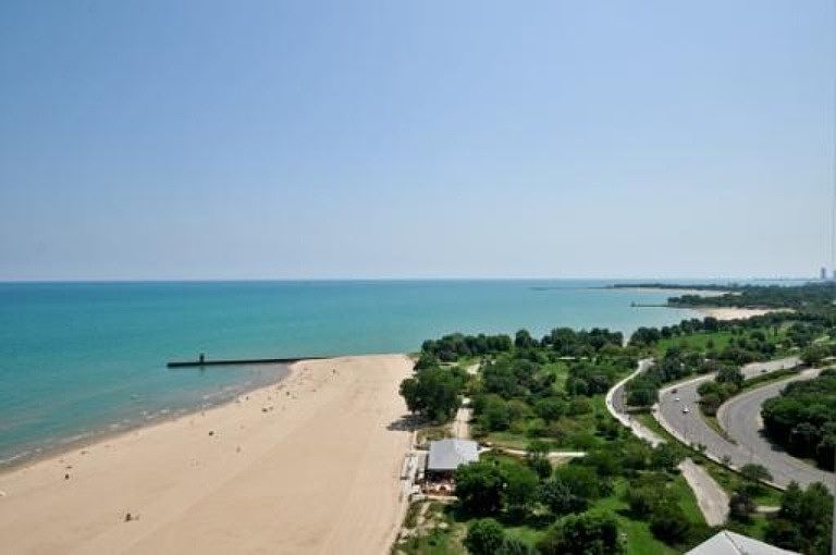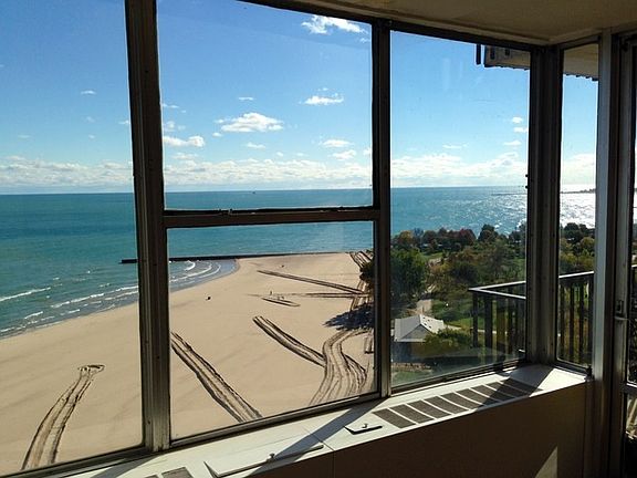 This unit faces out to Lake MIchigan and the Kathy Osterman Beach. The view is fantastic! The sand is just footsteps from the building without having to cross a busy street such as Lake Shore Drive. This is also the North end of the 18 mile bike trail which runs along the lake. Diverse neighborhood. Express bus #147 to downtown stops directly across the street on Sheridan Rd. Area offers plenty of restaurants, coffee shops, and grocery stores, i.e. Whole Foods. Brand new L.A. fitness gym also within less than a mile. Convenient store and dry cleaners 2 buildings away. Building supplied heat and water included. Indoor garage valet parking available for $150/month. 24 hour doorman. Rooftop deck and reading room. Outdoor patio with grills. Nearby Mexican beachside cafe offers casual dining. Or dine on your balcony as you overlook the beach with downtown views of Chicago's skyline including Navy Pier, the Hancock Building and Sears Tower.