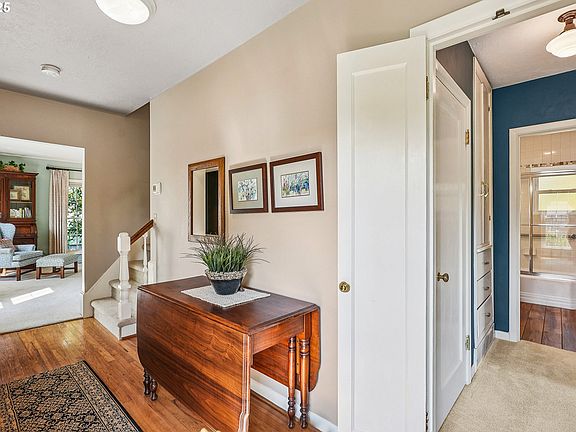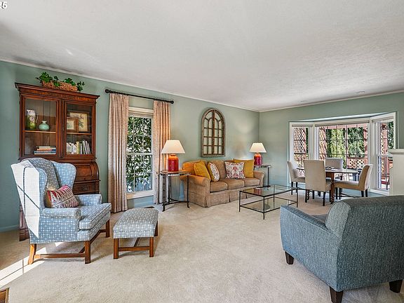 Updated, pristine Cape Cod with a spectacular fenced backyard with plenty of room for gardening & entertaining on the sun deck or in the covered gazebo. Attached garage & plenty of parking in the oversized driveway! The large, open living/dining room is flooded by light with windows on three sides & a gas fireplace surrounded by classic built-ins. Updated kitchen with stainless appliances, tile backsplash, quartz counters & custom cabinets. The elegant kitchen leads to the very large sun deck above the garage. The primary bedroom on the main level has custom wainscoting, several closets & an updated full bath. The cheerful bedroom upstairs is connected to oversized storage space. The finished basement has two separate exterior entrances making it prime for hobbies or potential as an ADU. Enjoy movies in the media room with it's own wood-burning fireplace. The lower level also includes a bedroom with ensuite full bath, desk space, several built-in cabinets & closets. The clean, bright laundry room has a sink and its own access to the exterior. Energy efficient updates include all the windows on the entire house have been replaced with double-pane windows and upgraded rigid spray foam & cellulose insulation. Updated systems include central AC & furnace in 2021, water heater in 2016, roof in 2011. Move-in ready perfection! New Season's, Kennedy School, Beaumont Village, Fernhill Park, Colwood & Rose City golf courses and endless shops, cafes & restaurants in every direction, plus easy access to the airport! [Home Energy Score = 5. HES Report at https://rpt.greenbuildingregistry.com/hes/OR10241252]