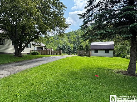 Outside, there's room to roam and relax. Enjoy your morning coffee on the back porch while the sunrises over the hill. So much to explore in the wide open yard with space enough for a garden, pets or future projects! Enjoy sitting by the waters edge or take a trip around the pond on your SUP or kayak! With an attached garage and an additional detached garage, there's plenty of room for storage. This home is move-in ready with tons of potential to make it your own! Just minutes from Ellicottville, the ski slopes and golfing! Don't let this one pass you by!