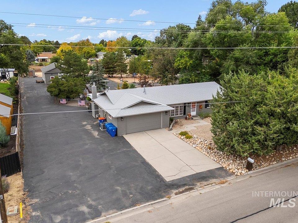 Beautiful Single-Level Home on Nearly an Acre with Separate Living Quarters! This wonderful Boise property sits on almost one acre (.90) and comes with an incredible 1,000 sq. ft. shop that’s been converted into separate living quarters—perfect for an Airbnb, multi-generational living, or guest space. The main home features a beautifully remodeled kitchen, bathroom, and master suite. You’ll love the real hardwood floors, separate living and family rooms, and cozy gas fireplace. The updated kitchen boasts a large island, built-in desk area, and abundant cabinet space, while the master suite offers a large walk-in tiled shower and spacious walk-in closet. Recent upgrades include a newer roof (2018), A/C (2022), and furnace (2018), giving you peace of mind. Step outside to the huge backyard—ideal for entertaining—with a covered patio, playset, greenhouse, and three storage sheds. The shop is a true highlight with upgraded lighting, new garage door, and a ductless mini-split heating and cooling system (2020). Inside you’ll find a full kitchen, large living area, bedroom, and bathroom—making it a fully functional separate residence. All this on .90 acres with no HOA dues!