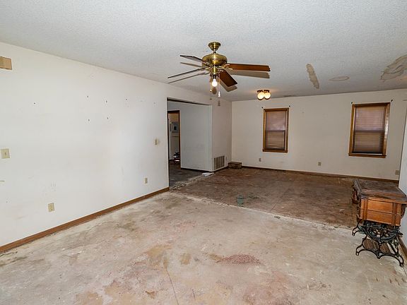 THIS PROPERTY IS BEING OFFERED IN A MULTI-PROPERTY AUCTION VIA LIVE STREAM WITH REAL TIME BIDDING, AUCTION BEGINS AT 5:30 PM ON MAY 9th, 2024. ONLINE BIDDING IS AVAILABLE THROUGH SELLER AGENT’S WEBSITE. PROPERTY IS SELLING WITH CLEAR TITLE AT CLOSING AND NO BACK TAXES. PROPERTY PREVIEWS AVAILABLE. NO MINIMUM, NO RESERVE!!! This 4-bedroom, 2-bathroom home sits on a half-acre corner lot, and features a covered front porch, a detached, oversized one-car garage, and a fenced-in backyard.   The home opens to a sizable living room which could include a dining area. The kitchen includes an eating space, ample counter space, and cabinetry. The primary bedroom has a walk-in closet, an ensuite bathroom with a walk-in shower, and laundry hookups. Three more bedrooms and a full bathroom complete the main floor. The basement includes bonus storage space.  Gun safe and refrigerator do not transfer with sale and will be removed prior to closing.  Main line to water has been turned off by seller due to broken pipe that has not been repaired.  *Buyer should verify school assignments as they are subject to change. The real estate is offered at public auction in its present, “as is where is” condition and is accepted by the buyer without any expressed or implied warranties or representations from the seller or seller’s agents. Full auction terms and conditions provided in the Property Information Packet. Total purchase price will include a 10% buyer’s premium ($1,500.00 minimum) added to the final bid. Property available to preview by appointment. Earnest money is due from the high bidder at the auction in the form of cash, check, or immediately available, certified funds in the amount $7,500.