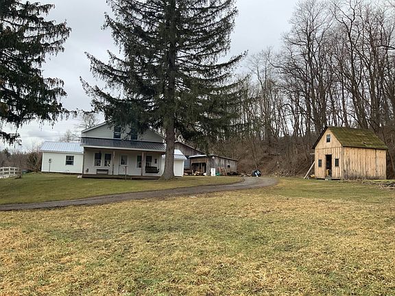 2.32 acres Land for Sale with Off-Grid Farmhouse New Berlin, NY! Country Home or Agri-Business with 2 Barns, Pastures, and Greenhouse! 2.32 acres with farmhouse and several outbuildings including barn/shop, horse barn, cabin, and greenhouse right along Rt. 8 just north of New Berlin, NY. This property has the unique County classification as a Residential and Commercial use property so would make a terrific location for country home or an Agri- business, country store, sawmill location, or tenant location for lease/rental. There are two woodstoves for heat, country kitchen with running water and open floor plan downstairs with master bedroom on first floor. Two additional bedrooms upstairs...both need some finish work. Large washroom connected to back of home used for heating water, washing vegetables and serves as a mudroom. The home does not have electricity hooked up but the electric is right at the road and only 50 feet away from getting back on line. Outhouse on property. Outbuildings: Barn/Shop is 40 x 60 with concrete floor and back half is insulated. Loft is 32 x 40 for storage and connected to the barn is a 20 x 24 wood storage shed. In addition, there is a 12 x 16 lean-to storage area connected to barn. Horse barn is 30 x 34 with three horse stalls, six goat pens, chicken coop, and hayloft. Cabin is 12 x 16 and great for kids to play inside and out. Greenhouse is 8 x 12. Other features: Seller has small produce building along rt 8 and sells camp firewood as a side business. Circle driveway. Fenced pastures for goats. Garden area. There is a lot going on here for the price and has multiple use potential. Great opportunity for country lifestyle and back to the basics!