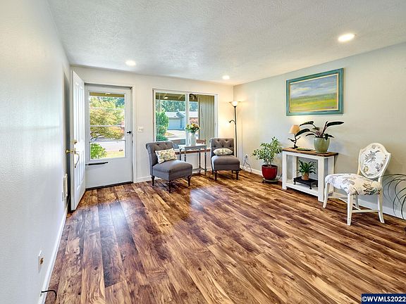 Desirable South Salem neighborhood, near shopping, easy I-5 access. Nice one level 3 bedroom 2 bath home with fresh interior paint, vinyl plank flooring in kitchen, dining room and living room, newer vinyl windows, french doors, inviting covered front sitting porch and covered back patio with large private fenced yard, plus RV parking! Wonderful home don't miss it!