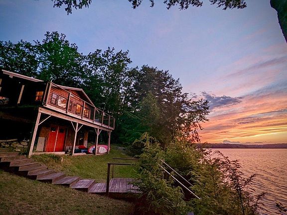 Discover this incredible year-round property nestled at the water's edge. The main house is a comfortable 2-bedroom residence with a garage underneath, perfect for year-round living. This home has an open concept with the kitchen and living having water views. 3 season sun porch is off of the primary bedrooms. The cottage is a cozy 3-bedroom, 1.5-bathroom retreat with over 125 feet of owned water frontage. Enhance it with a heat pump for year-round use. Spacious deck overlooking the water. There is a separate storage building ideal for conversion into a bunk house or additional guest accommodation. Enjoy the included 2 kayaks, paddleboards, and water skis for endless water adventures. Both properties have newer metal roofs and are in excellent condition. Situated at the end of a dead-end road on over 1 acre of land, offering tranquility and seclusion, yet convenient to amenities for groceries, restaurants and shopping. This property is perfect for a family compound or as an investment opportunity where you can live in one home and rent out the other. Both properties come fully furnished, making it easy to move in and start enjoying or renting immediately. Don't miss out on this fantastic opportunity to start living your lake life today!
