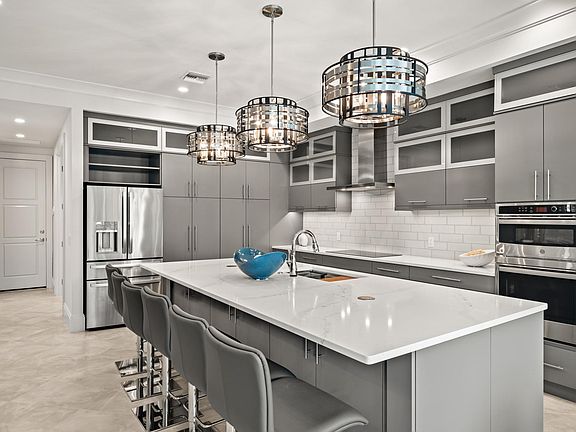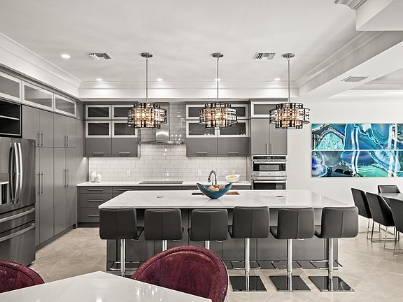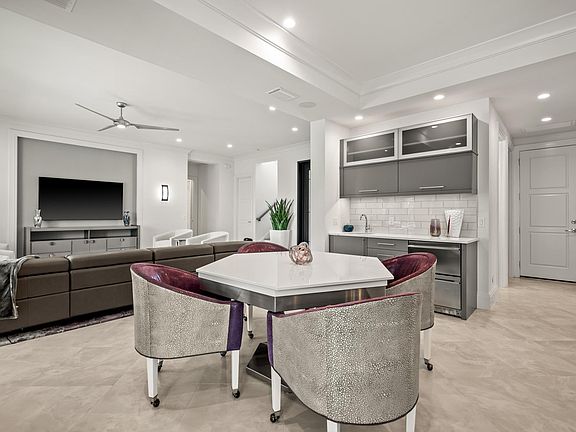 New construction 2 story home just completed in February of 2024 in the desirable yacht club neighborhood in Cape Coral Florida. Home is fully furnished. This 4-bedroom, 4.5 bath contains an on-suite bathroom in each bedroom. Main floor boasts a furnished lanai, with full size table and chairs as well as full-size built in grill, grill storage and refrigerator. The lanai overlooks a huge pool guarded by child safety gate. Pool is screened in and contains a Roman bath connected hot tub. Back yard is privacy fenced. Main level also includes an elevator. Lower level includes master bedroom, master bathroom, large office and guest bathroom. Upper level includes 3 on-suite bedrooms, furnished balcony overlooking the river and the Yacht Club. Owner pays for lawn and pool maintenance. RV garage is shared with owner as dual storage of owner and renter items.
