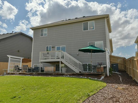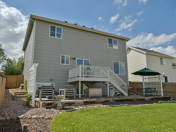 BEAUTIFUL!! 4BR, 4BA, 2 Car, 2 story in Saddle Rock Ridge! Walk up to the inviting front porch and enter into the cozy living room with gas log fireplace on the main level. Adjacent to the living room is the dining room and remodeled kitchen with granite and stone backsplash. LED lighting with custom fixtures throughout the house! New roof and Hot Water Heater. Nice deck off the dining area to a spacious backyard that backs to open space. Upstairs boasts a large Master suite with sitting area, attached 4 piece bath and walk in closet. Three spacious bedrooms up that have been freshly painted. New carpeting throughout the main and upper level so you can just move in! The garden level basement can be a family room or can be divided to make another bedroom with the attached 3/4 bath. Walking distance to Canyon Creek Elementary in renowned Cherry Creek School district.Located near E470 with easy access to all major areas. 20 minutes to the airport and 20 minutes to DTC.